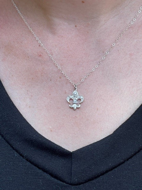Simple and beautiful, we love this sterling silver fleur de lis set with 5 CZs, on a 20" sterling silver chain. Alone or layered with your other favorite necklaces, we know this will become your everyday go-to.