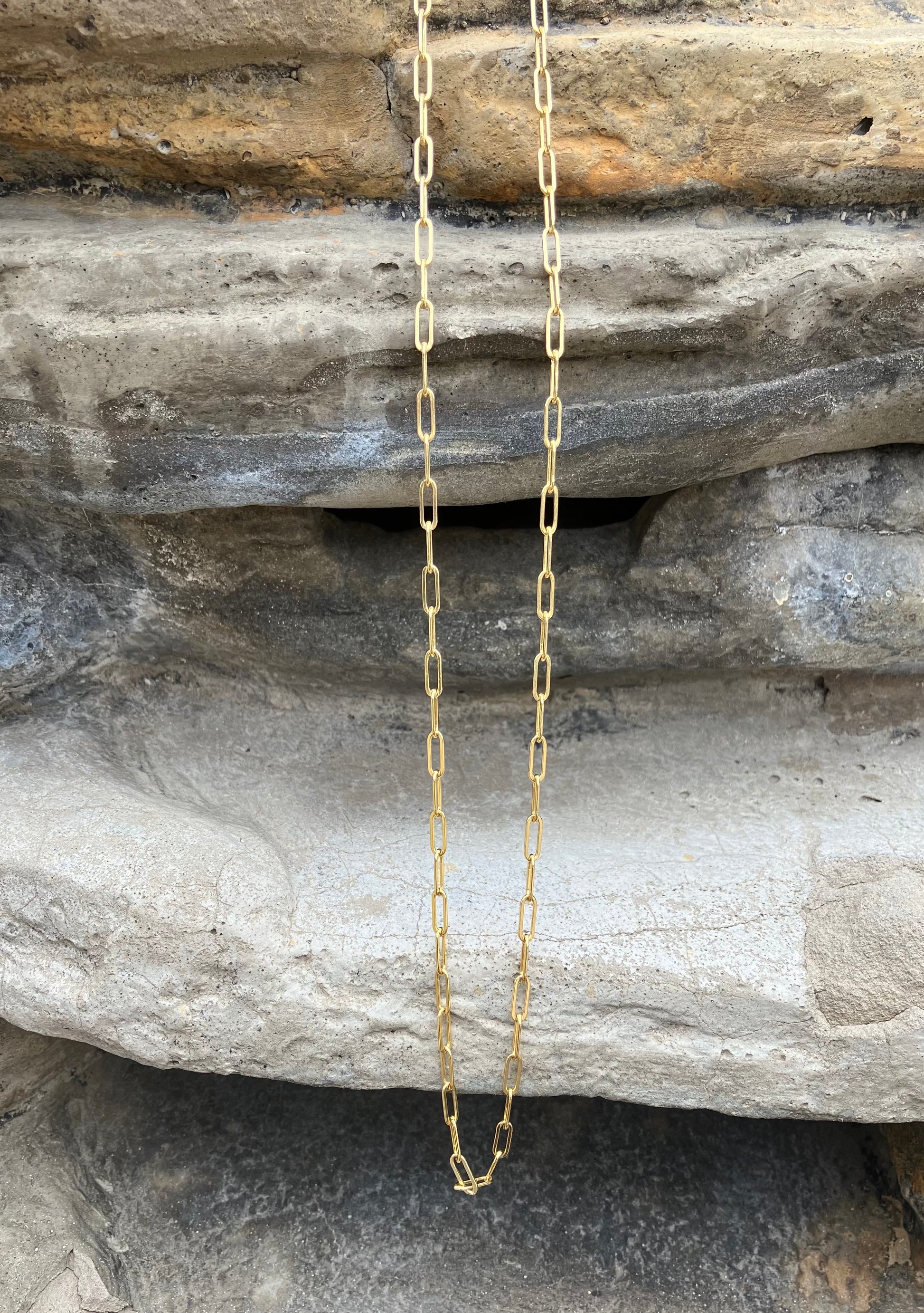 This 20 inch modern and simply elegant gold-filled paperclip chain is the perfect staple piece to any outfit! If you are a layering fan, it also pairs well with it's sister chain, which is 18 inches long.