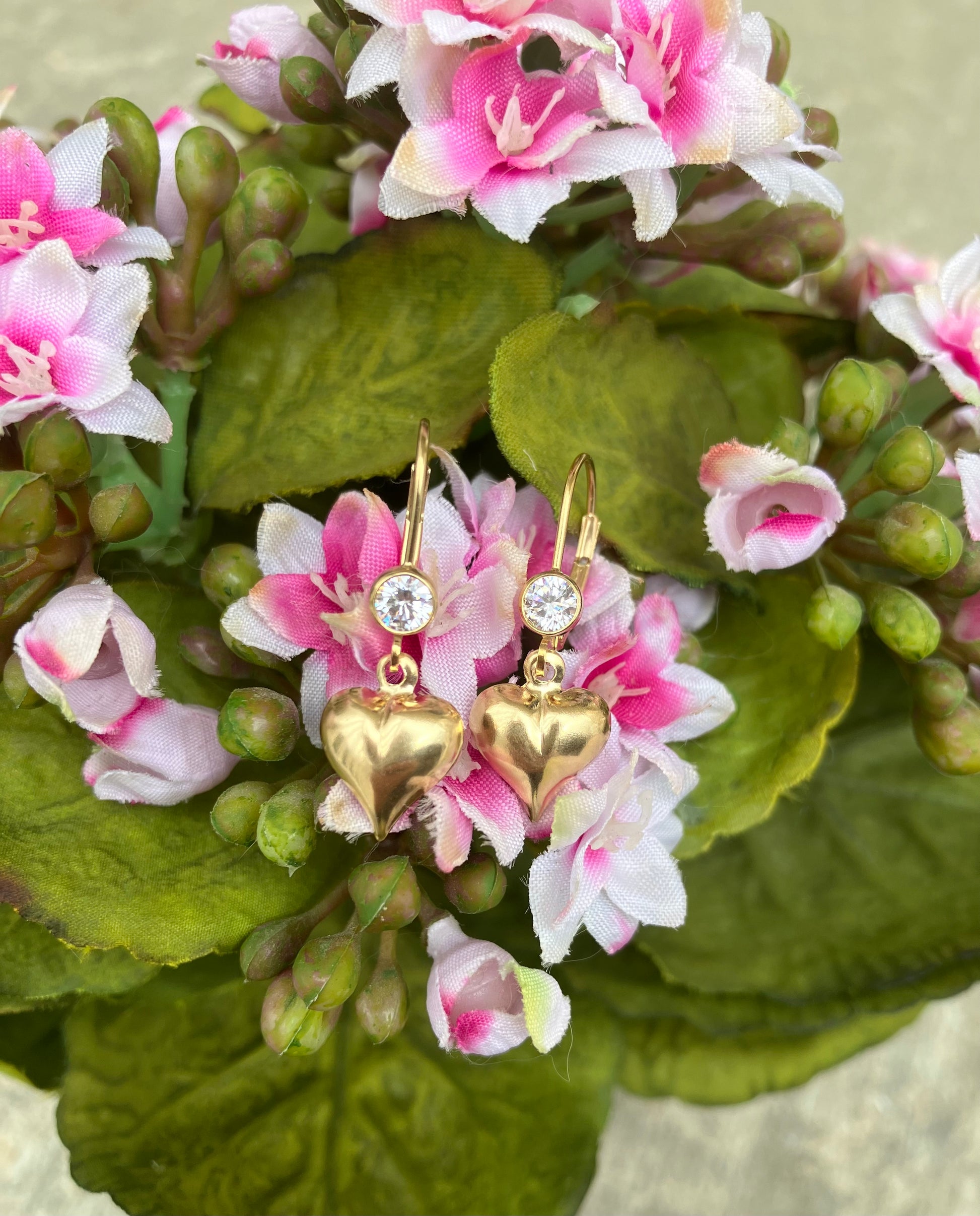 Gold Filled Leverback Heart Dangle Earrings