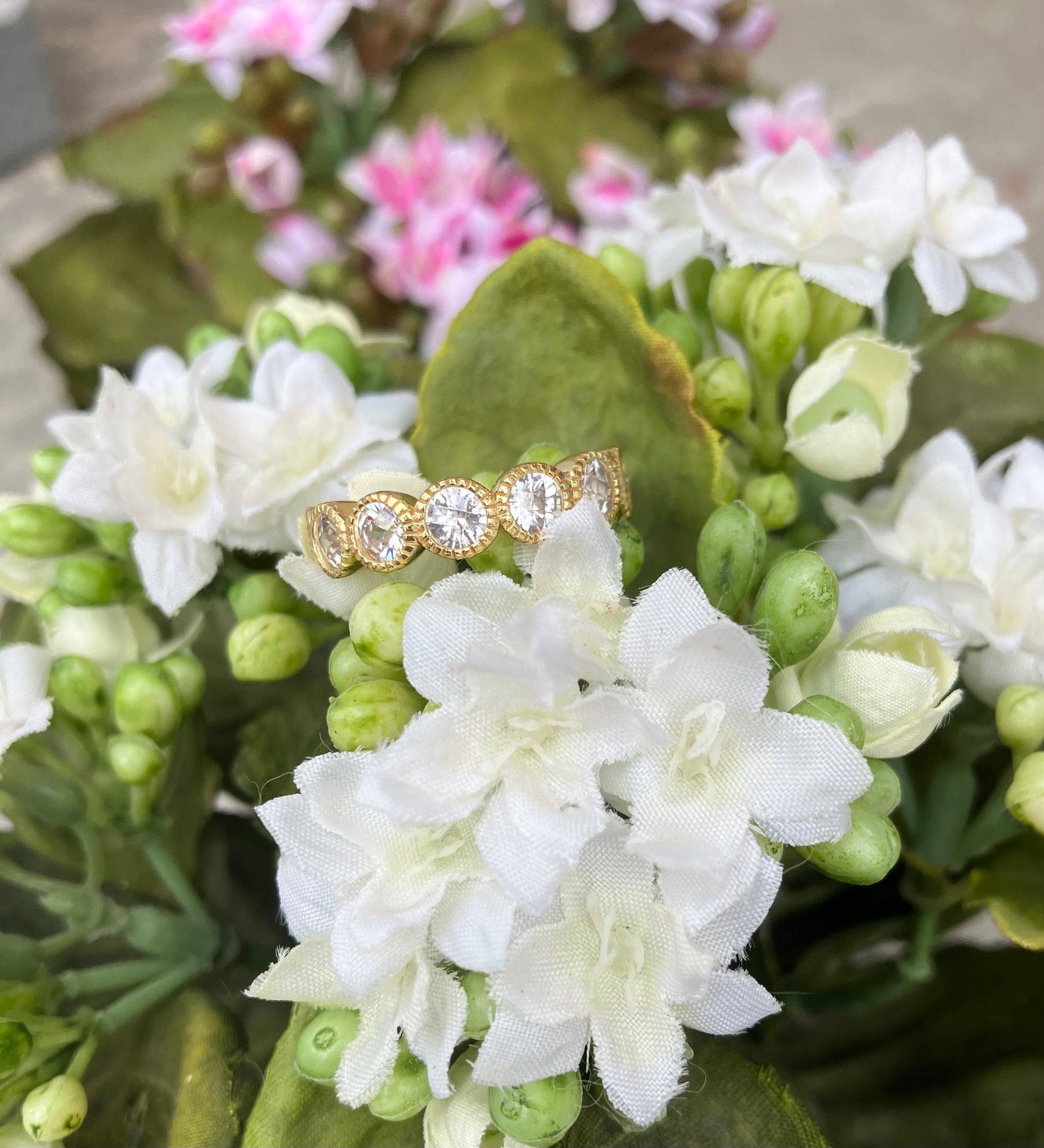 Gold Plated & Faceted White CZ Eternity Band