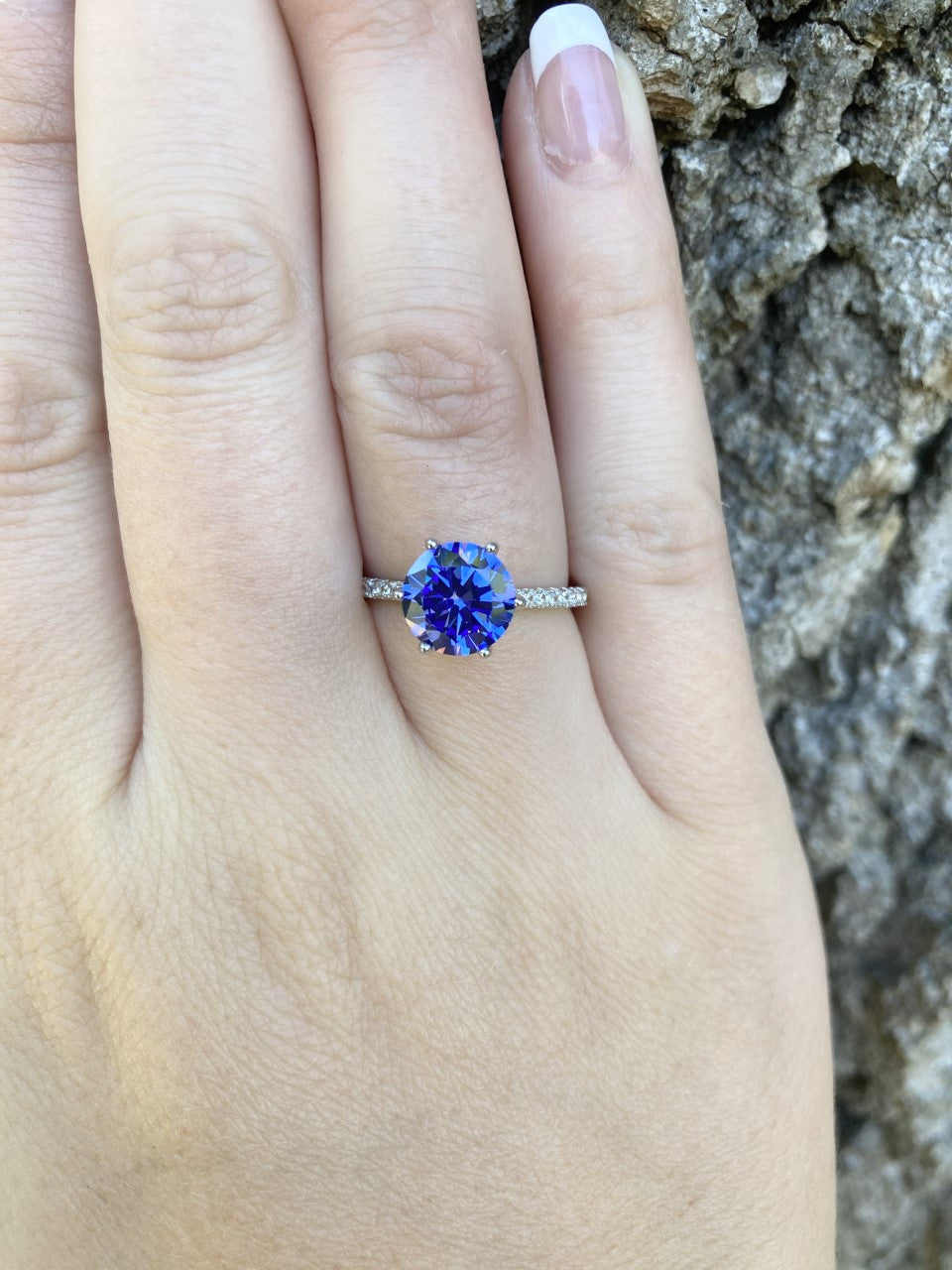 Just love this sweet ring! The center stone is a nice size but still has that sweet look to it...especially with the white CZ's that travel down the shoulders of the ring. The sterling silver setting is rhodium plated. Wear it with jeans & a t-shirt or your favorite little black dress. Size 6