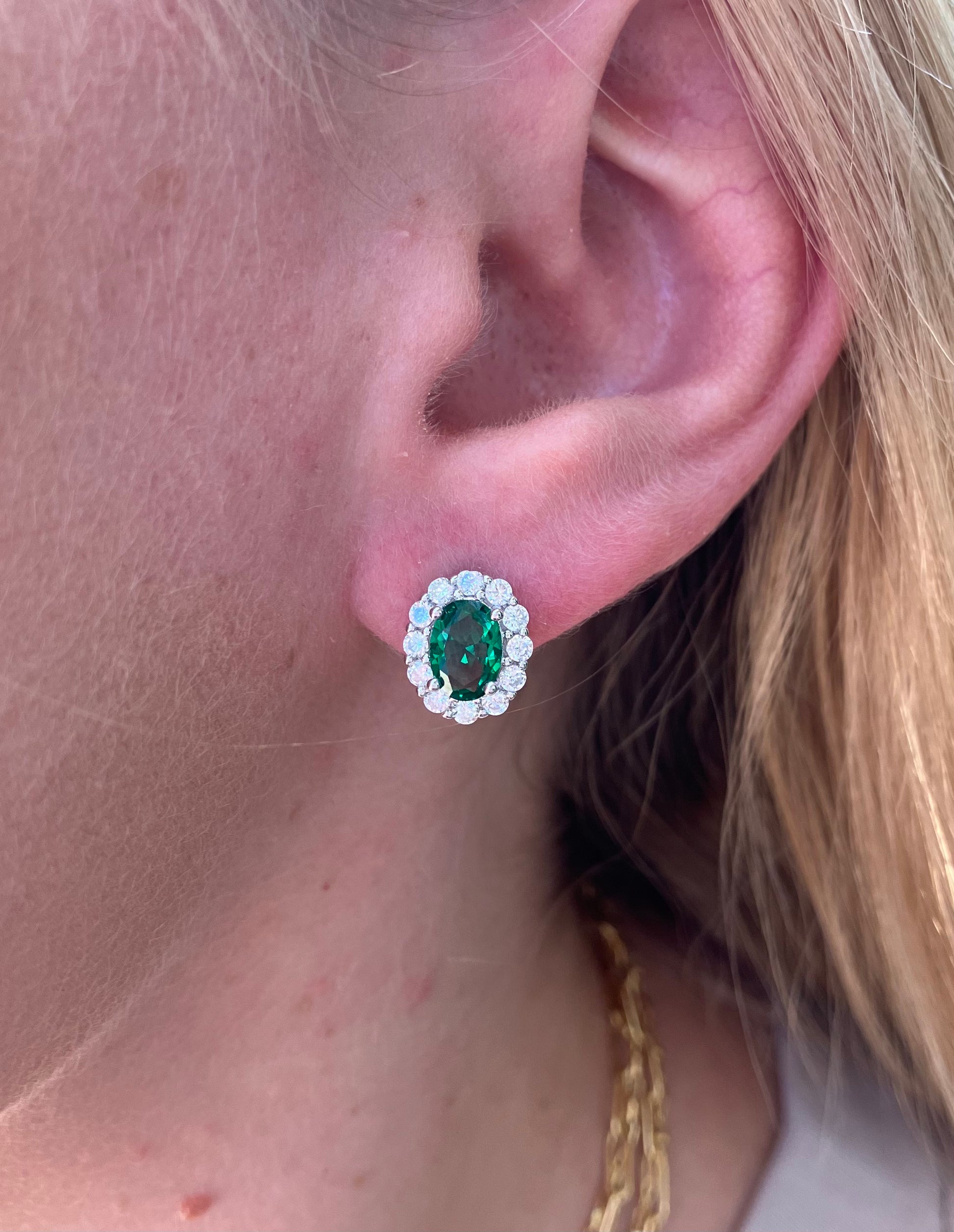 Oval Halo Green & White CZ Earrings