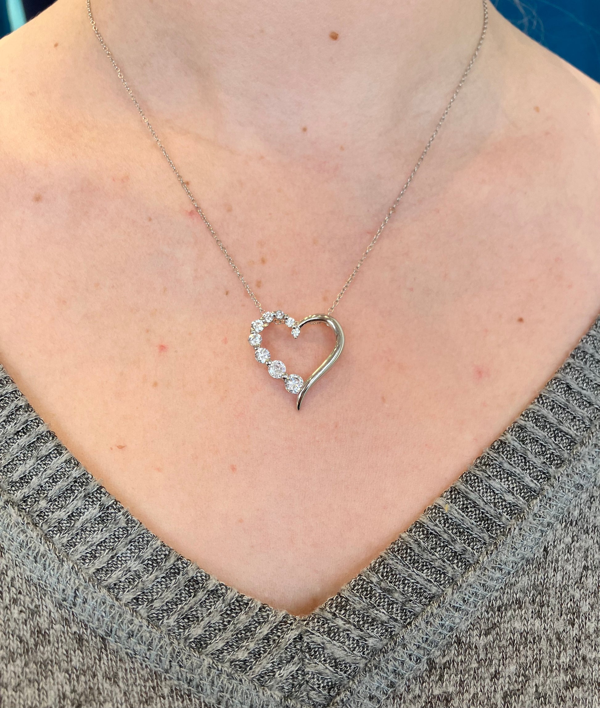 This gorgeous necklace is hands down one of the prettiest we've ever had at the Gem Cottage! Set in sterling silver, it features nine round white cz's. This necklace is 18" long and the pendant itself is 21mm in height & width. We also have this exact necklace in gold vermeil, so if you like the look of yellow gold better, we've got you covered!