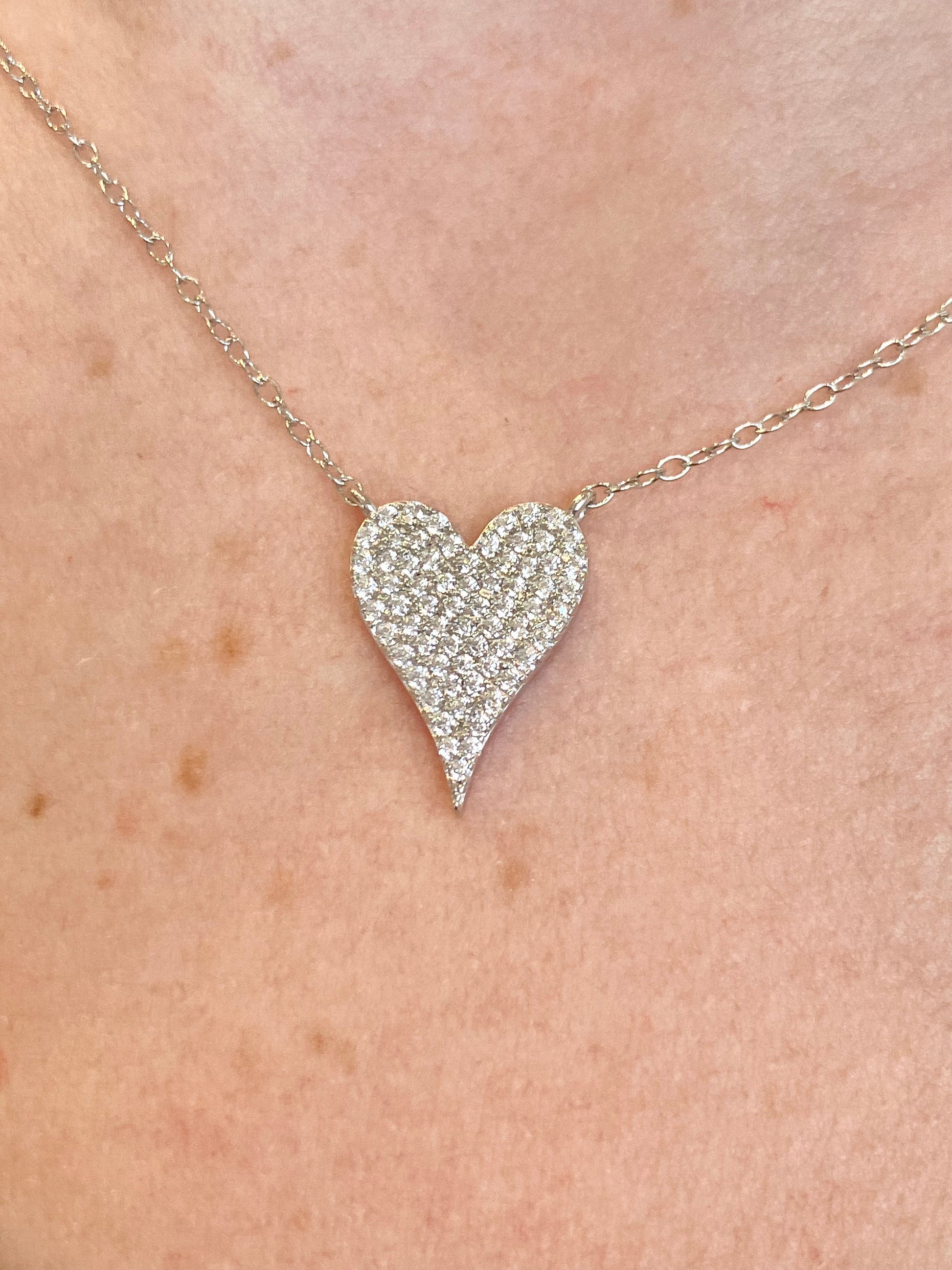 If there was ever a perfect heart necklace, this would be it! This sterling silver necklace features a sterling silver heart pendant covered with white pave cz's. Perfect for everyday wear or special occasions, you could easily layer with this necklace if you would like to. This necklace is 18" long and the pendant is 15.6mm in height.